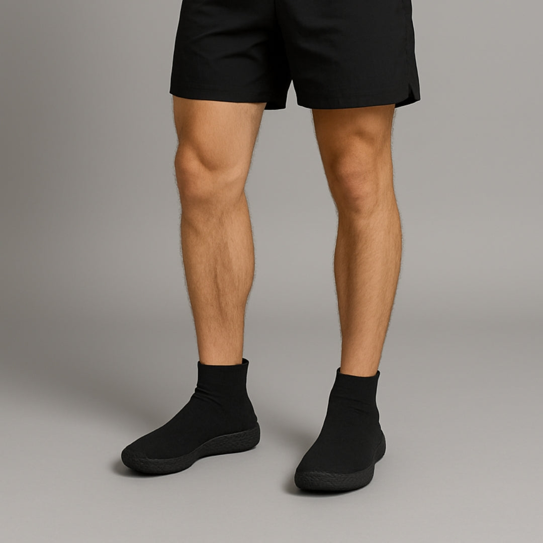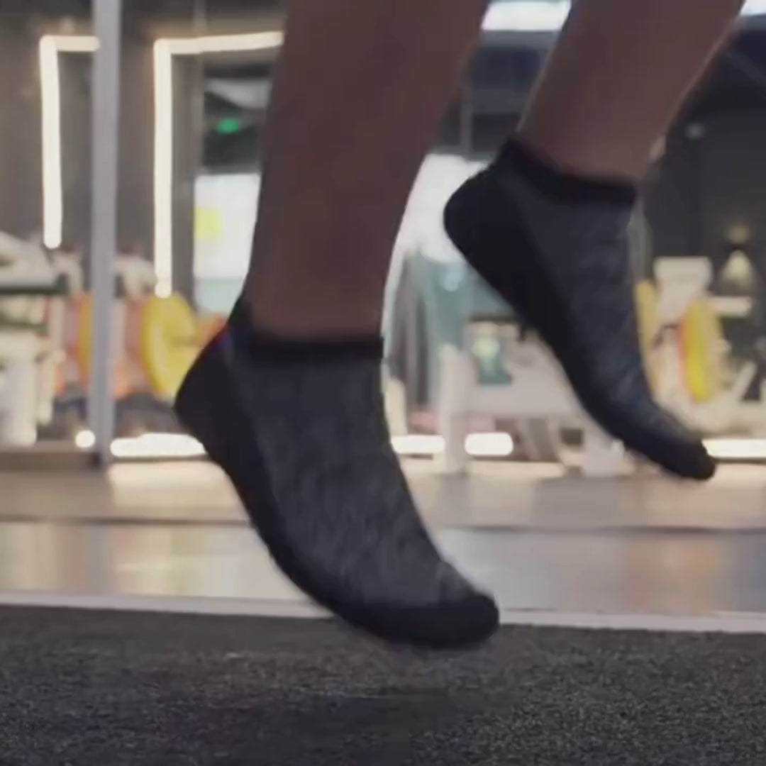 Das atmungsaktive Stretch-Material passt sich perfekt deinem Fuß an. Du schlüpfst hinein und hast sofort das Gefühl, eine bequeme Socke zu tragen – nur mit dem Halt eines Schuhs.